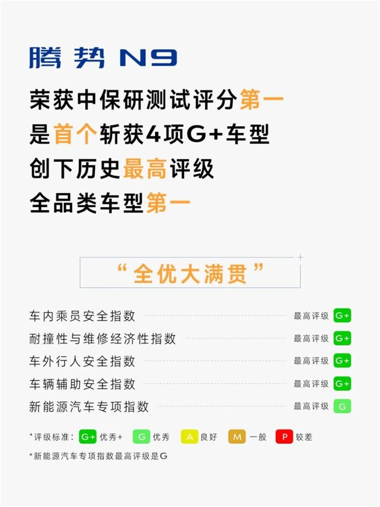【騰勢(shì)N9榮獲中保研測(cè)試評(píng)分第一,五大維度均獲得歷史最高評(píng)級(jí)】