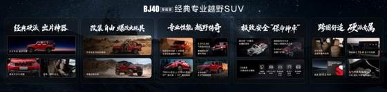 北京越野董事長王昊表示,BJ40作為中國越野的領(lǐng)路者,親歷過無數(shù)盛事榮耀,也成為中國汽車的獨特文化符號,在全球用戶的認可中走入了萬千家庭。BJ40以探險家的名義,開啟全新征程,在經(jīng)典設計、自由改裝、專業(yè)性能、極致安全和跨圈舒適五大維度再造新經(jīng)典,為中國越野車市場再造經(jīng)典專業(yè)越野SUV。