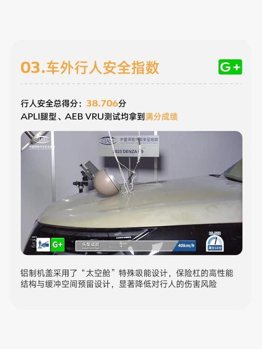 真正的安全,應該是全方位的安全考量。騰勢N9獲得車外行人安全分指數G +評級,行人安全總得分為38.706分,APLI腿型、AEB VRU測試均拿到滿分成績。這源于騰勢N9鋁制機蓋采用了“太空艙”特殊吸能設計,保險杠的高性能結構與緩沖空間預留設計,顯著降低對行人的傷害風險,將安全從車內延伸至車外,讓每一次出行都增添一份安心。