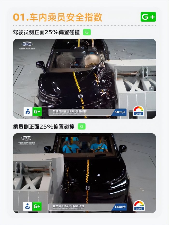 在車內(nèi)乘員安全指數(shù)評(píng)測(cè)中,騰勢(shì)N9以G+的成績(jī)交出了一份滿意答卷。無(wú)論是嚴(yán)苛的駕駛員側(cè)正面25%偏置碰撞,正面50%偏置碰撞,還是側(cè)面碰撞,車頂強(qiáng)度、座椅/頭枕總體評(píng)價(jià),騰勢(shì)N9均以G+成績(jī)通過。