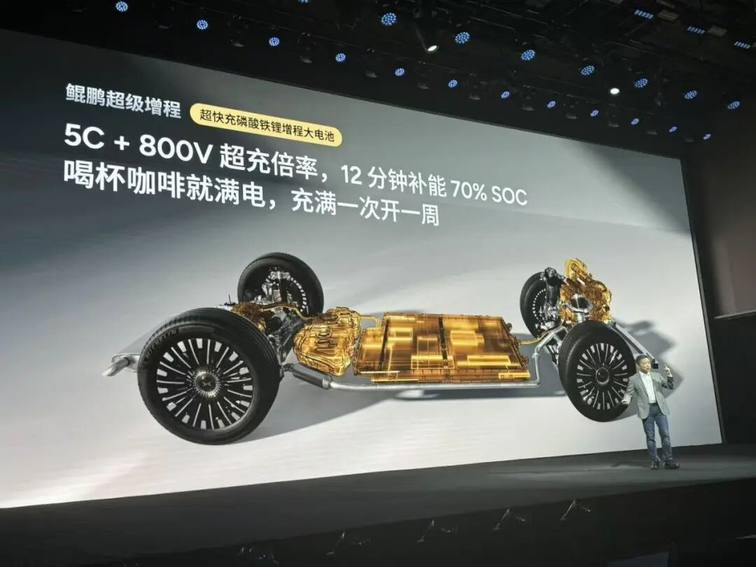 例如全新大三排SUV智己LS9,電池容量分52和66kWh兩個版本,純電續航分別達到320和402公里,全系標配800V平臺;小鵬X9增程版,全系標配800V平臺+63.3kWh超大電池組,純電續航超過450公里,10%—80%快充僅需12分鐘。