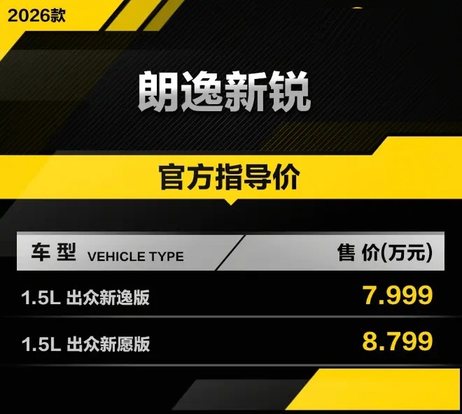 大家好,我是大李。說實話,看到2026款上汽大眾朗逸新銳上市的消息時,我第一反應不是去看它漲了多少配置,而是先瞅了一眼價格。7.999萬到8.799萬,這個價格區間確實有意思,跟2025款的對應配置一比,一分沒動。但你細看就會發現,上汽大眾把原來的新逸版和新愿版直接砍了,就剩下兩個出眾系列。這操作感覺像是在告訴你:別糾結了,就這兩款,自己選吧。