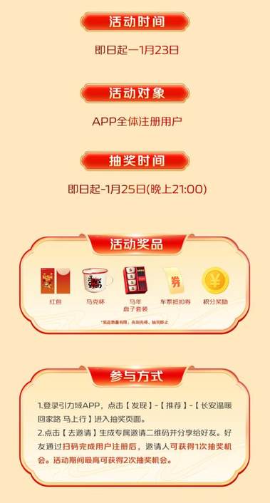為構建全天候、多渠道的服務體系,長安汽車同步開啟長安“引力域”APP線上溫暖平臺。返鄉人員可參與APP內“長安溫暖回家路 馬上行”抽獎贏好禮,現場掃碼注冊更可解鎖專屬權益,實現線上線下溫暖相伴。
