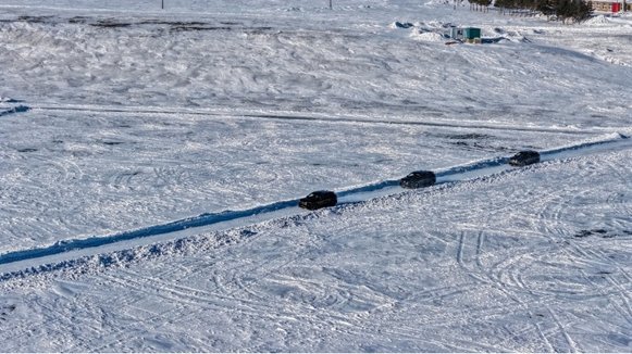 冰原上,一汽-大眾的試駕車隊正劃過弧線,輪胎碾過積雪的“咯吱”聲混著發動機的低鳴,在寂靜的雪原格外清晰。