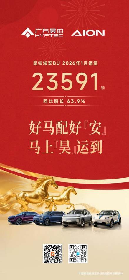 昊鉑埃安BU運營持續深化,2026年1月銷量同比增長63.9%
