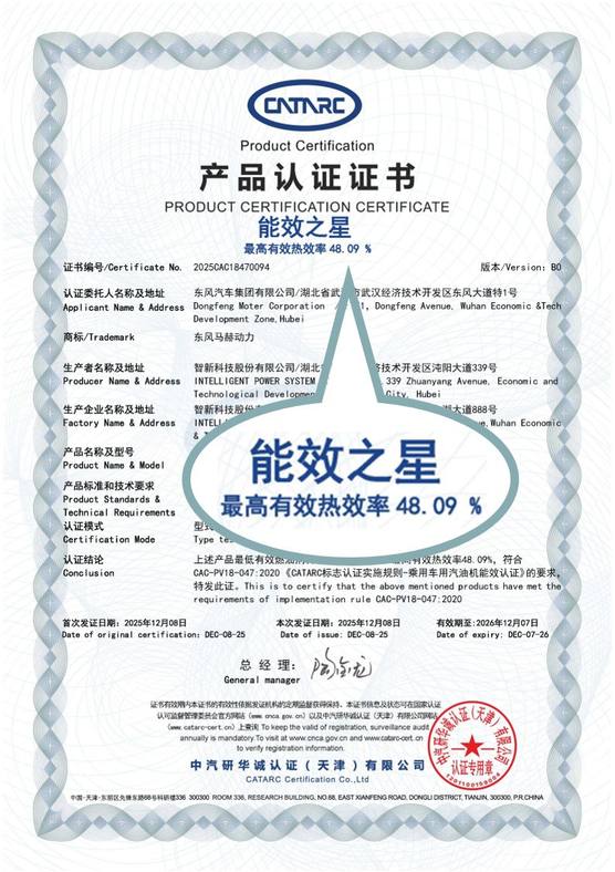 技術是品牌長期主義的底氣。東風風神依托集團深厚底蘊,在核心動力領域持續突破。馬赫電混系統最新一代1.5T混動專用發動機,以最高有效熱效率45.18%獲得中汽中心“能效之星”認證,成為行業首款突破48%熱效率的混動汽油發動機,在強動力、低油耗與平順性上樹立新標桿。同時,L2+級智能駕駛輔助覆蓋28項高頻場景,一體化壓鑄技術提升車身剛性與安全,為家庭出行筑牢技術防線。