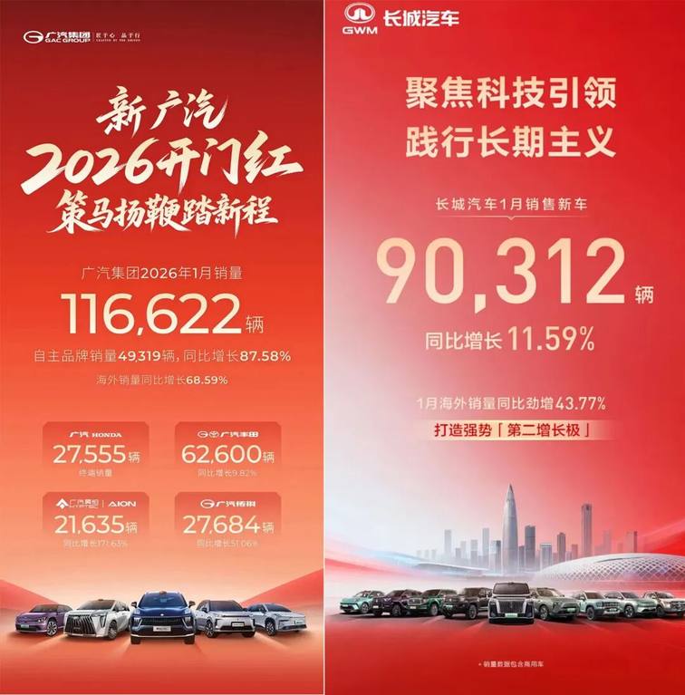 自2023年以來,比亞迪長期占據中國汽車市場月度銷量冠軍位置,其在新能源領域的先發優勢和規?;罡偁帉κ滞麎m莫及。然而,2026年1月的格局發生了微妙變化。