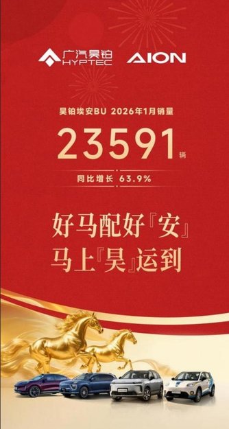 昊鉑埃安BU運營持續深化,2026年1月銷量同比增長63.9%