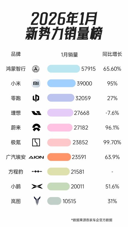 在昊鉑埃安BU在組建后的首個完整月,便交出了一份亮眼成績單,1月銷量達23591輛,同比增長63.9%。這一逆勢上揚不僅延續了2025年第四季度以來的增長勢頭,更初步驗證了雙品牌一體化運營在提升市場響應速度、強化渠道效能和釋放協同價值方面的積極成效。