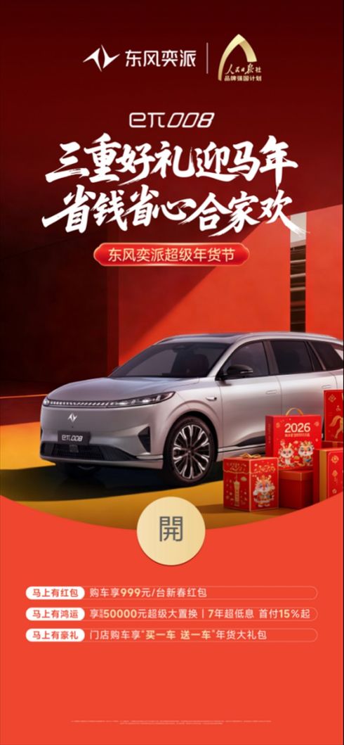 還有不到半個月,農歷馬年的鐘聲就要敲響。此刻的車市,年味與焦灼感并存:既想開新車衣錦還鄉犒勞自己,又怕掏空年終獎讓春節過得緊巴巴,更擔心剛提車就被背刺。就在這觀望與糾結的臨界點,東風奕派強勢打出“超級年貨節”,直接推出“三重好禮迎馬年”鉅惠,核心的“7年超低息、首付15%起”的殺手锏,給了消費者閉眼入的底氣,如此有力度的政策更表明,此時此刻,正是入手東風奕派的最佳窗口期。