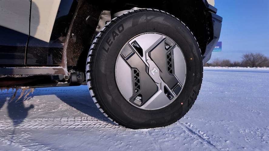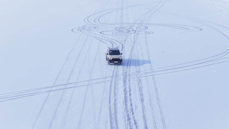 沒有裝備釘胎的情況下,M817 Hero版在冰面上能做的不多,只要不大角度轉向,起碼它可以保障穩定的行駛方向。但如果想要玩得開心一些,也可以關掉電子限滑,猛士以前驅為主的輸出特性,讓它的轉向過度更容易控制,只要能把握松踩油門的節點,配合反打方向盤的時機,M817 Hero版就是你學習冰上漂移的好幫手。