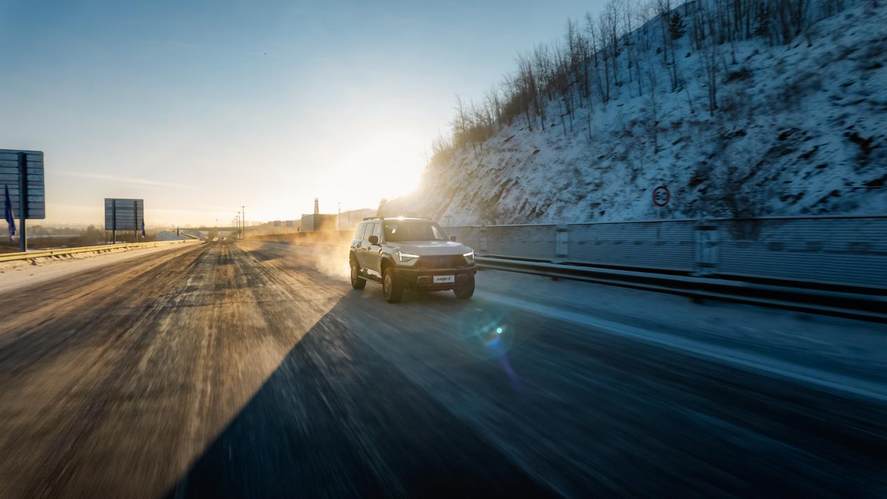 開上猛士M817 Hero版從海拉爾出發,我先經過綏芬河到滿洲里的G10高速,這也是中國高速路網18條東西橫線中的第1條線。在融雪處理后的高速道路上,以120km/h車速行駛,M817 Hero版并沒有給我傳統越野車的反饋,在換上雪地胎、胎壓2.1bar的情況下,它保持了良好的直線穩定性,轉向增益帶來了較強的中央區力矩,不會感覺開起來精神緊繃。而且猛士也有不同于合資非承載車型的風格,M817 Hero版在遇上波浪起伏時,沒有強烈的“船感”,阻尼浮動行程很克制,盡可能控制住車身垂向運動,而較高的彈簧懸架剛度則讓它的俯仰也得到抑制。