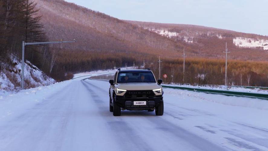 雖然M817 Hero版的行駛動態不松弛,但它依然有良好的次級舒適性,無論是水泥瀝青路面的顆粒感,還是碾壓暗冰的起伏,猛士都能把細微抖動壓在車身之下,為艙內帶來平穩的環境。