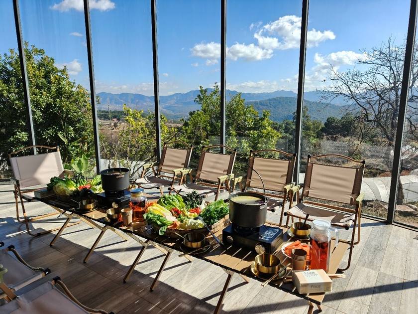 午餐時段,蔬蜜院為嘉賓打造了一場有機主題鄉村土雞火鍋盛宴。湯底用散養土雞柴火灶熬制,核心食材則是良道有機農場當日清晨采收的新鮮時蔬——帶著晨露的鮮蔬從田壟直達蔬蜜院餐桌,僅數小時便鎖住新鮮。無需繁雜調味,蔬菜的自然清甜與土雞的鮮香融合,讓嘉賓嘗到有機本味。席間,圍繞蔬蜜院的體驗與有機農業的交流不斷,氛圍溫馨熱烈,也讓大家對蔬蜜院的有機休閑體驗更添喜愛。