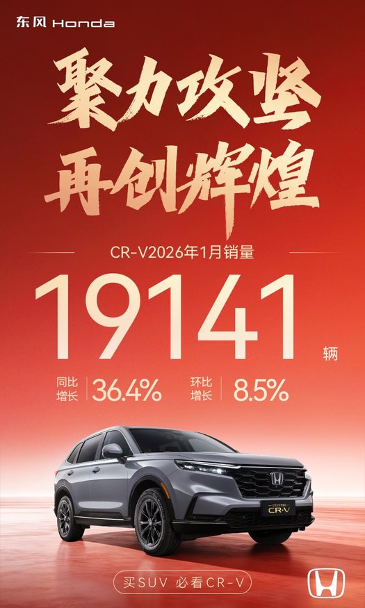 在東風本田2026年1月的銷量構成中,SUV車型繼續扮演著中流砥柱的角色。其中,CR-V與HR-V的表現尤為亮眼。