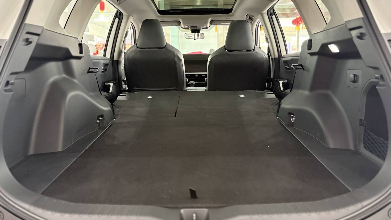 靜態(tài)體驗(yàn)下來(lái),榮放作為傳統(tǒng)燃油車,智能化和舒適性雖然不是核心賣點(diǎn),但也讓人看到了誠(chéng)意。比如CarPlay、HUAWEI HiCar、Carlink都有,座椅支持電動(dòng)調(diào)節(jié)、加熱,電動(dòng)尾門(mén)、全景天幕等也都有配備。2690mm的軸距讓其后排空間在同級(jí)中不占優(yōu)勢(shì),但后備箱空間是亮點(diǎn),可容納4個(gè)26寸、2個(gè)20寸行李箱,后排座椅整體放倒后縱深可達(dá)1.9米。
