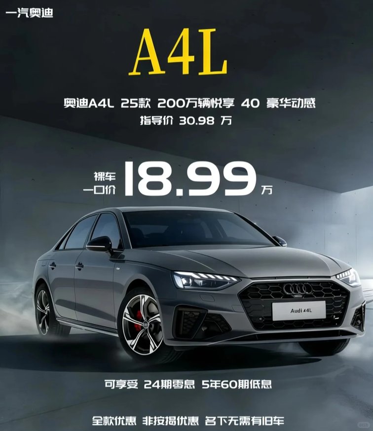 網(wǎng)絡上各地的奧迪A4L入門款,即2025款200萬輛悅享版40 TFSI 時尚動感型,已經(jīng)有差不多價格的車型。不過我們以走訪的成都市場來分析,終端裸車價19.7萬元。意味著你對邁騰B9 380TSI 心動后,再多花2.51萬元,就可以買到奧迪A4L入門款,有沒必要多花這一點點預算?