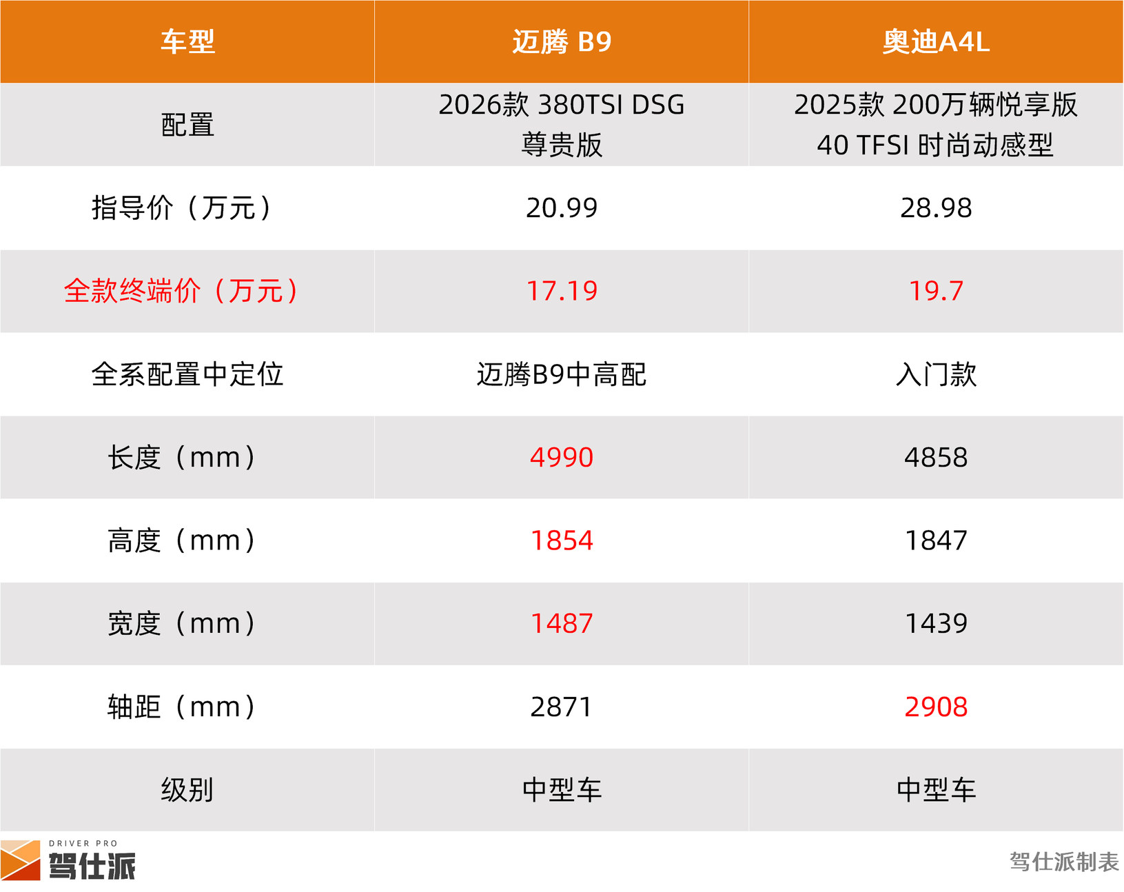 雞頭還是鳳尾,是買合資中高配,還是豪華入門款?本系列2026春節(jié)前選車導購,第2期,我們來說說邁騰B9 380TSI和奧迪A4L怎么選?