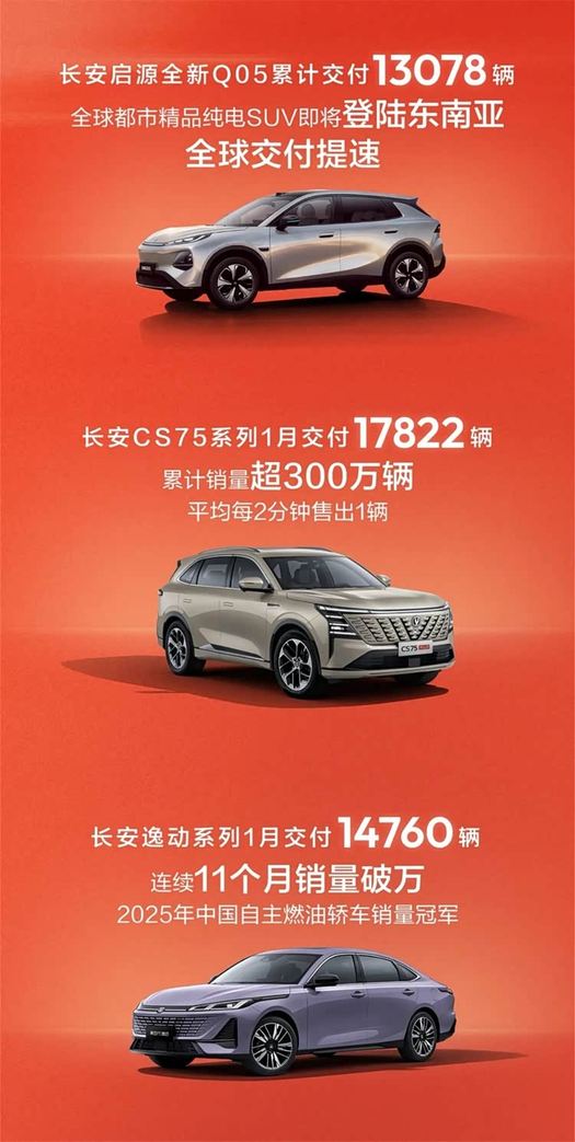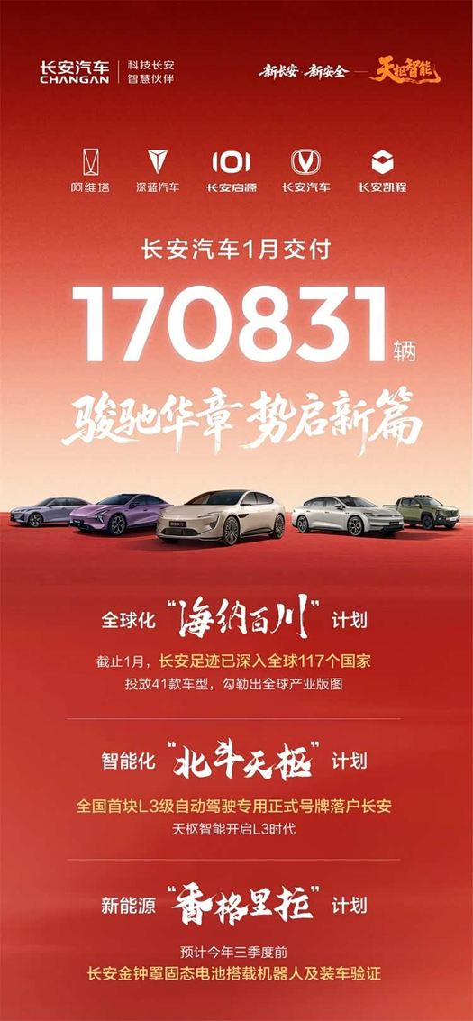 全球汽車產業向新能源轉型的浪潮中,長安堅持“燃油車守根基、新能源拓新局”雙線戰略,1月交付數據充分印證了這一戰略的科學性——經典燃油車釋放品牌韌性,新能源板塊加速突破,形成雙向賦能的良好態勢。