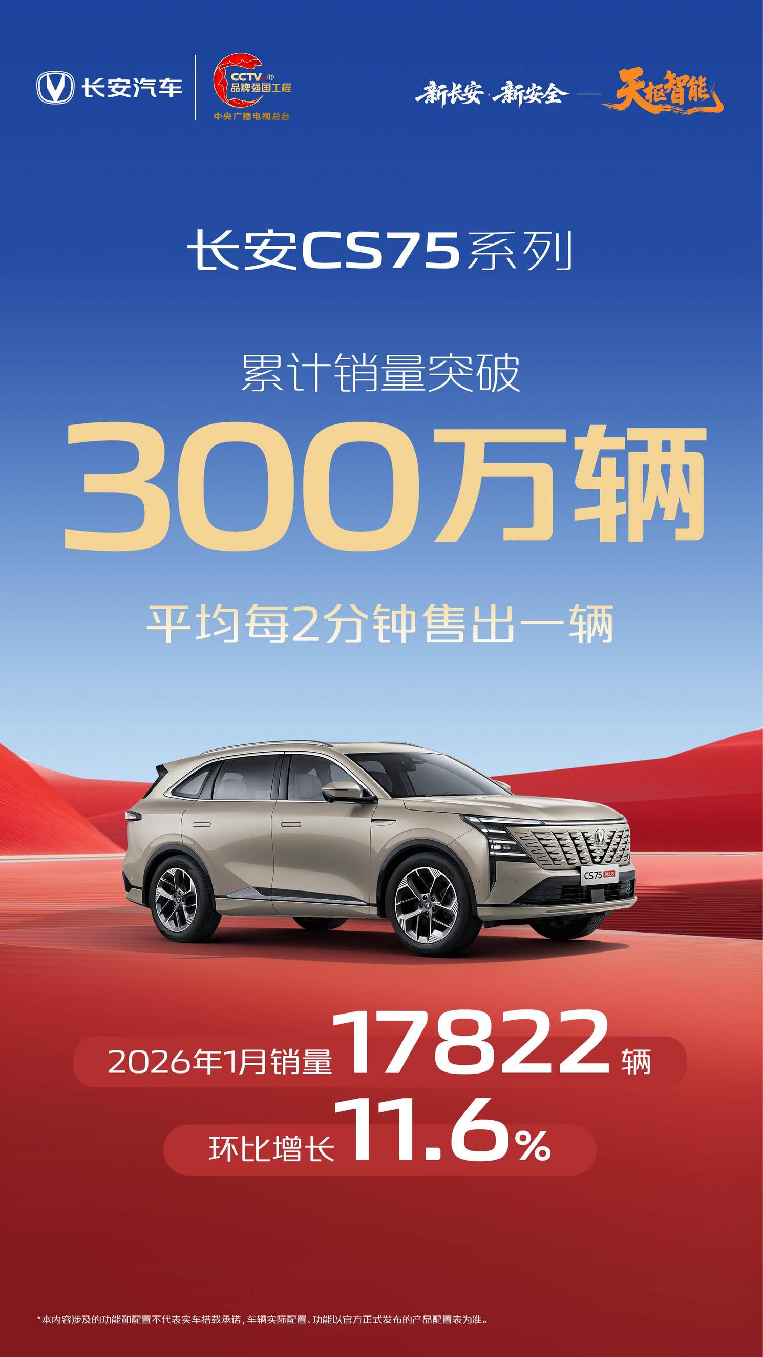 而長安汽車依靠CS75系列、逸動系列兩大主力系列發力,喜迎“開門紅”。具體來看,長安CS75系列1月交付17822輛,累計銷量超300萬輛;長安逸動系列1月交付14760輛連續11個月銷量破萬,成為2025年中國自主燃油轎車銷量冠軍。