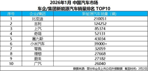 新年伊始,中國新能源汽車市場的競爭輪廓迅速顯現,頭部車企之間的差距在1月銷量榜單中被進一步拉開。截至2月2日,根據部分車企及上市公司對外披露的數據,比亞迪以超21萬輛的新能源汽車銷量位居行業首位,展現出極具強大的市場競爭力,繼續穩居中國新能源市場頭部位置,并在主要車企中拉開明顯差距。