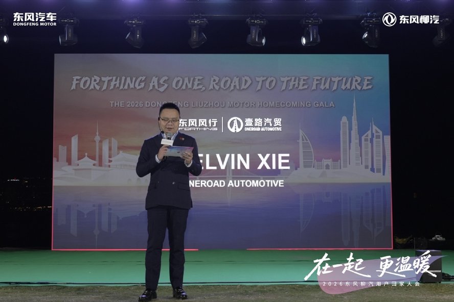 伴隨著悠揚的旋律,東風柳汽進出口公司副總經理溫華登臺致辭:東風柳汽海外深耕35載,我們始終感恩每一位用戶的信任與選擇。正因為有大家的信賴,東風柳汽的產品才得以陪伴更多家庭的生活與旅途、見證更多企業的發展與壯大。同時,由衷感謝阿聯酋經銷商的大力支持和全情投入,讓這一場跨越5000公里的“團聚”得以實現。未來,東風柳汽會繼續保持務實奮斗的精神,用堅實可靠的品質與智能舒適的產品回饋用戶。無論是創富助力還是溫情守護,東風柳汽都將與全球用戶并肩前行。