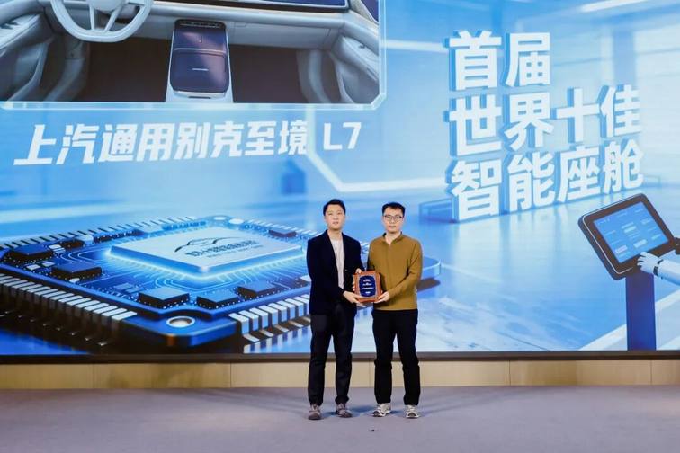 世界十佳智能座艙評委會秘書長李鏑鋒為上汽通用別克北方大區(qū)副總經(jīng)理倪旭授牌