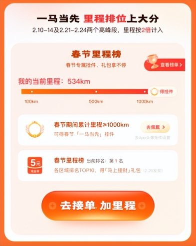如果能入圍所在城區春節里程榜前十,還能贏取開工加油包,為節后出行節省成本。