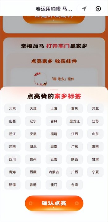 為此,平臺推出“打開車門是家鄉”活動,乘客只要點亮“家鄉”標簽,就能獲得“嗨!老鄉”專屬頭像掛件。