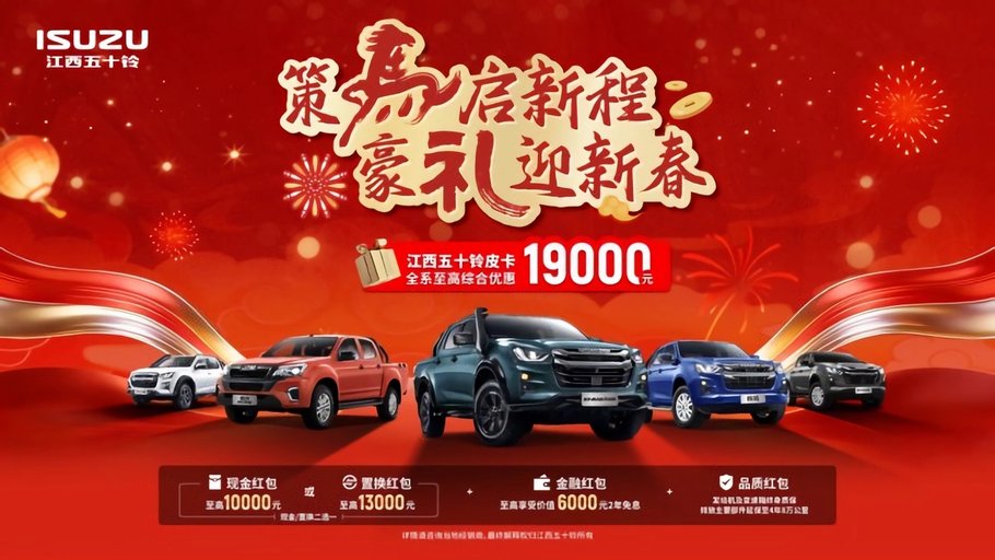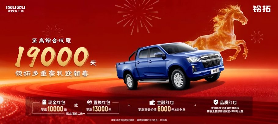 策馬啟新程,豪禮迎新春!江西五十鈴皮卡至高綜合優惠19000元