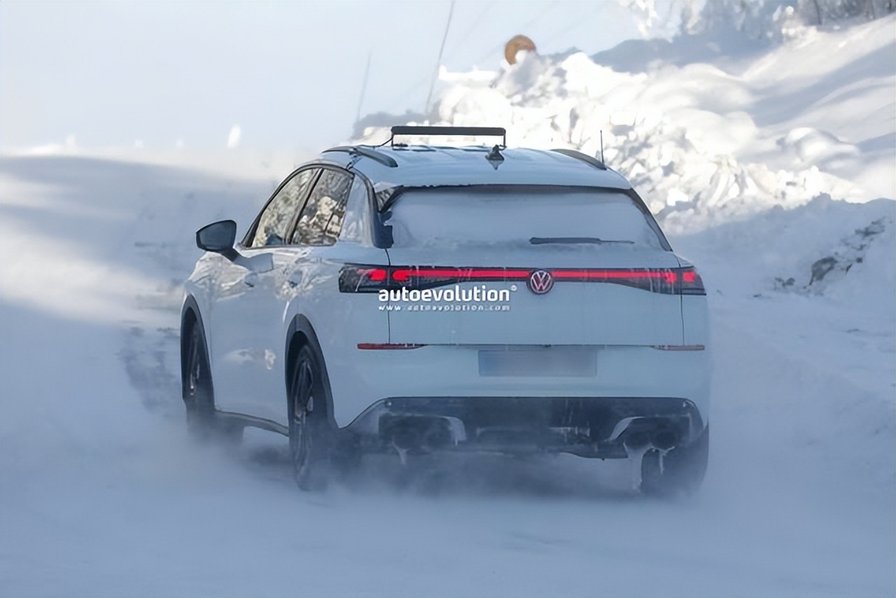 外觀層面,測試車雖覆蓋偽裝,但R系列專屬運動化特征一目了然。車頭與車尾配備更具攻擊性的運動包圍,進氣與散熱開口更大,適配高性能發動機的工作需求;車身側面最具辨識度的是大眾R系列標志性藍色制動卡鉗,搭配亮黑色五輻輪輞,運動氛圍直接拉滿。值得注意的是,測試車裝配冬季專用輪胎,屬于高寒路試常規配置,量產版預計更換高性能夏季輪胎,輪輞樣式也可能優化調整。車尾采用雙邊共四出排氣布局,這是大眾燃油性能車的經典標識;而車友關注的Akrapovi?(天蝎)排氣是否像高爾夫R一樣原廠標配,仍待官方后續公布。