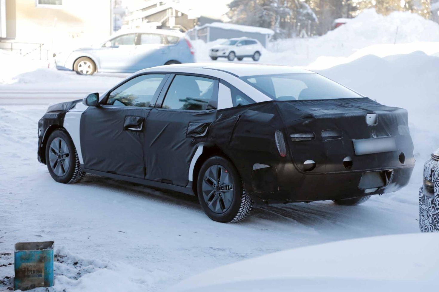 另外,新車還擁有更加平緩的車頂線條和一個小尺寸的后側窗,粗壯的C柱結構也能提供更好的幫助。A柱和C柱的傾斜角度比現款更大,所以也讓這臺車看起來更加的動感;同時,該車還配備了空氣動力學輪轂,這樣的設計放在純電車型上也毫不違和,據了解,下一代伊蘭特的軸距比現款要更長。