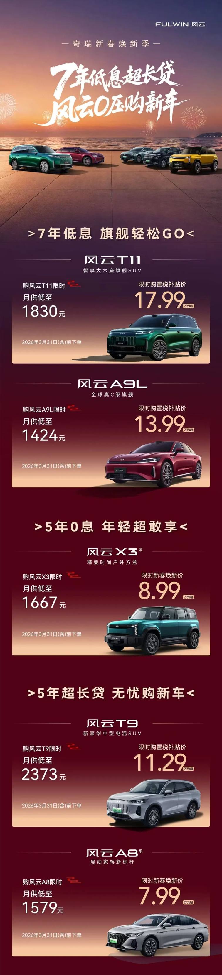 新春0壓購(gòu),風(fēng)云品牌全系可享7年低息讓豪華觸手可及