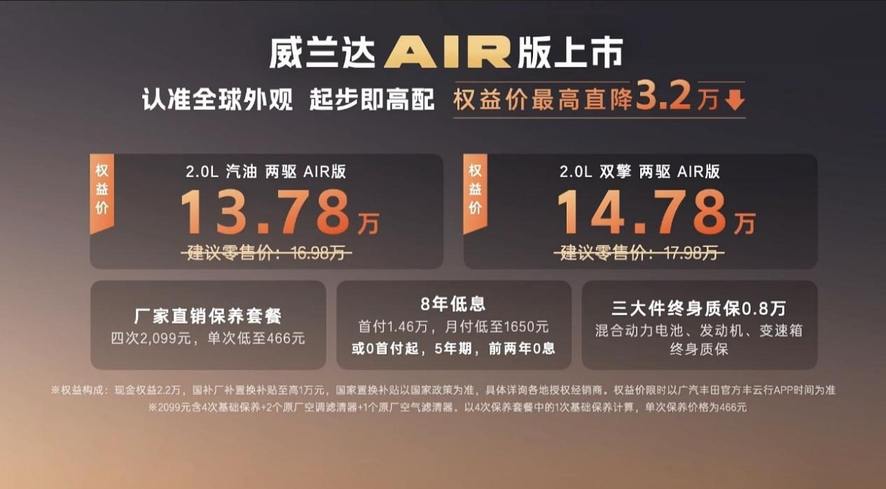 開工即王炸!廣汽豐田全新威蘭達AIR版上市,13.78萬起