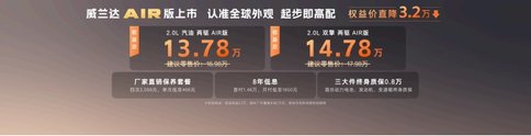 13.78萬元起!全新換代威蘭達AIR版正式推出,享廠家直銷保養套餐