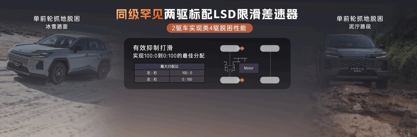 在整車架構(gòu)上,全新?lián)Q代威蘭達標配豐田全新域控架構(gòu),擁有豐田引以為傲的強悍機械素質(zhì)。在核心性能方面,AIR版標配同級唯一的LSD限滑差速器,左右前輪可實現(xiàn)扭矩實時分配,讓兩驅(qū)車型也能獲得媲美四驅(qū)的脫困能力,應(yīng)對冰雪或泥濘路況也能從容行駛。