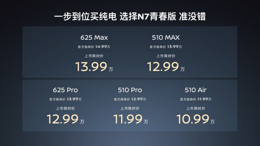 為了讓更多家庭,輕松擁有這款越級品質的純電轎車,N7青春版煥新而來。