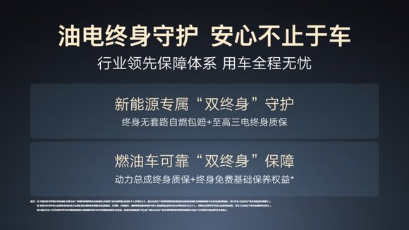 為回饋廣大用戶支持與信賴,此次春季發布會同步推出新能源專屬“雙終身”守護、燃油車可靠“雙終身”保障。