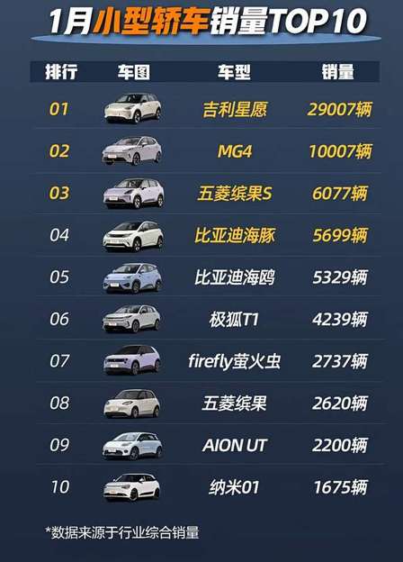 跟著銷量買小型車代步,1月份純電小型車銷量