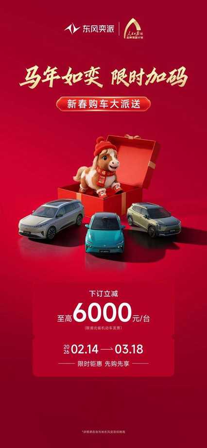 除以上車型,購買納米01的用戶,也可享4000元購置稅補貼、5年0首付0利息新春金融禮等福利。從政企聯(lián)動的消費補貼,到真金白銀的廠家讓利,再到觸手可及的金融方案,東風奕派始終以用戶為中心,讓每一份對美好出行的期待都能輕松落地。新春福利誠意拉滿,購車時機恰逢其時。趁著新春好時節(jié),快將心儀愛車與新春好運一同帶回家,開啟不“奕”樣的馬年新旅程吧!