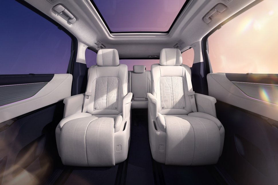空間與座椅,MPV的核心戰場,兩車各有側重。2026款傳祺M8 HEV的車身尺寸分別為5212/1893/1823mm,軸距3070mm,空間利用率拉滿,二排航空座椅調節行程650mm,180cm乘客腿部剩兩拳,第三排同樣兼顧舒適體驗,1210mm的二排內高和160mm的寬敞過道,方便孩子自由穿梭,貼合了孩子的玩樂需求,并且后備箱容積放倒第三排后可擴容至1586L,家用帶娃、露營裝備全能裝。