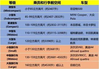 EPA將乘用車(指Cars,MPV和皮卡劃分到了卡車Trucks范圍)分為幾個級別,主要依據座艙內部空間容積: