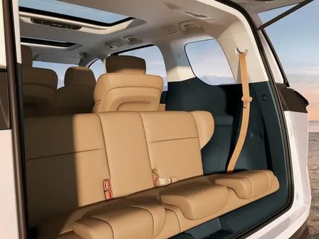 賽那采用5門7座布局,第二排座椅支持多向電動調節和軌道滑動,第三排座椅可折疊收納,常規后備廂容積為525升,第三排座椅收納后可擴展至2,112升,使車內空間靈活多變。