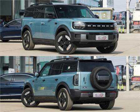 福特智趣烈馬采用承載式車身,所以車身高度和底盤高度都比福特烈馬低一些,但長度增加了不少,主要用在尾廂部分,帶來更大的內部空間。外飾方面,保留了福特烈馬家族風格的橫貫式車頭造型和大字母標,包括圓環的頭燈和中央橫向燈帶,一眼便知是烈馬家族。相比之下,前杠顯得厚實很多,依然采用傾斜造型提升接近角。