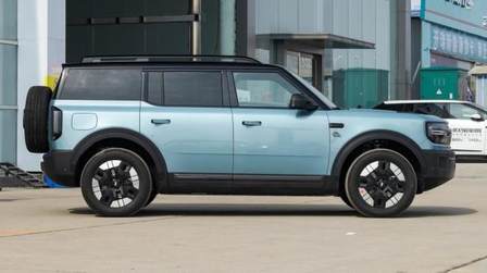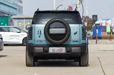 車身尺寸,長寬高分別為5025/1960/1825mm,軸距2950mm。相比福特烈馬,軸距完全相同,長度增加了225mm、寬度縮小了30mm,高度降低了10mm,體量感依然很足,標準的中大型車水平。通過性參數,接近角30度、離去角32度,縱向通過角19度,最大涉水深度600mm,比硬派越野車稍微遜色,但比城市SUV強太多。雖然方盒子造型整體可發揮空間不大,但細節上還是有看點,車頂行李架必不可少,腰線在后端上揚,尾窗是平整化布置,底部從前到后都增加了比較粗的黑色塑料裙邊,有很好的防擦效果。門把手為半邊彈出式平整布置,車身干凈整潔。