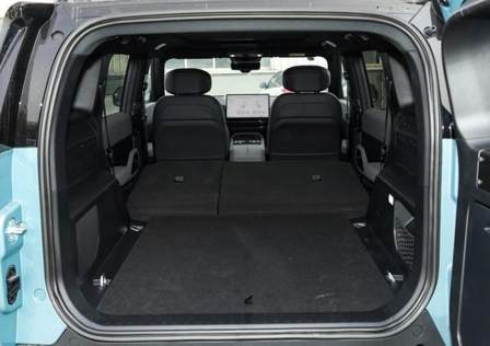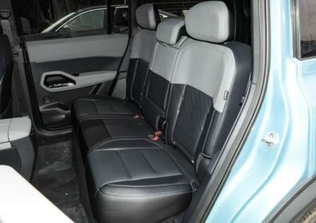 一般方盒子的風阻系數都比較高,但這臺車敢于挑戰風阻,前機蓋前端做了大開口的通風道,實現了下壓車頭的效果,但視覺效果還是方盒子。這個開口可以將迎面氣流直接引導至車頂。再加上車身其他共32處風阻優化設計,使得風阻系數做到了0.35Cd,在方盒子中很優秀,能夠帶來綜合續航60公里增量。