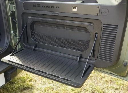 打開尾門就能獲得一個廚房操作臺,鋁合金桌板最大承重18kg,可放置電磁爐開火做飯,直接用尾廂內壁220V電源取電即可。同時,還可以用慢充口實現6.6kW大功率外放電,戶外所有需求都可滿足。