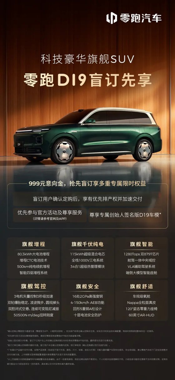 此外,旗艦新作D19也已開啟盲訂,支付999元意向金即可享受優(yōu)先排產(chǎn)、專屬車模等尊享權(quán)益。