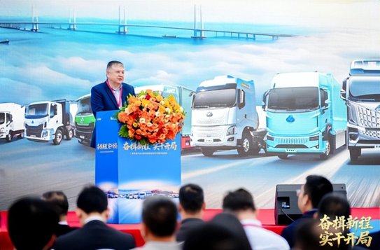 隨后中國物流與采購聯合會副會長楊國棟,廣西北部灣國際港務集團有限公司黨委書記、董事長胡華平,東風柳州汽車有限公司總經理林長波等領導共同登臺,為活動啟動揭幕,并分別發表講話。楊國棟指出:“東風柳汽與北部灣港集團協同發力,是產業鏈深度融合的典范,更是服務國家戰略、推動交通強國建設的生動實踐”;胡華平表示,北部灣港集團將主動服務國家戰略,持續優化“新三樣”運輸服務體系,為“廣西制造”揚帆出海搭建便捷平臺;林長波則強調:“左手是制造,右手是物流,中間連接的是千千萬萬的奮斗者”。講話立足發展實際,既擘畫了雙方戰略合作的發展藍圖,也為深化產港融合、服務雙循環新發展格局凝聚了強大共識與奮進力量。