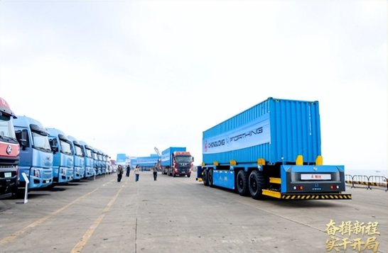 在系列簽約與新品發布后,活動迎來了備受關注的智能作業展示環節。在開工指令發布之后,智能卡車隨即啟動裝載集裝箱,與自動化港口裝備協同完成吊裝上船作業,車與船鳴笛呼應,直觀展現了“汽車智造+港口物流”融合的新質生產力。活動當天下午,船舶搭載著一批T5 EVO KD散件集裝箱緩緩從欽州港離泊駛向柬埔寨。同時,在3月5日也將有47輛東風柳汽乘用車(星海S7、星海V9、M4),從北部灣港出發,直達阿聯酋杰貝阿里港。